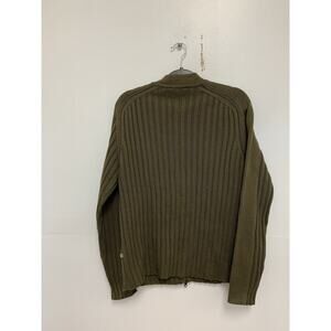 Sevres Sweater Mens 52 Large Full Zip Rib Knit Wool Army Green Italy Designer