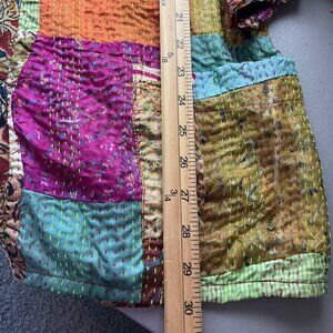 Sevya OS Handmade Kantha Patchwork Kimono Jacket Silk Boho Relaxed