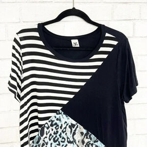 Sew In Love Black Pattern Mixing Stripes & Animal Print Tee Shirt Women's Large