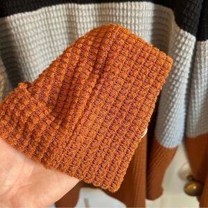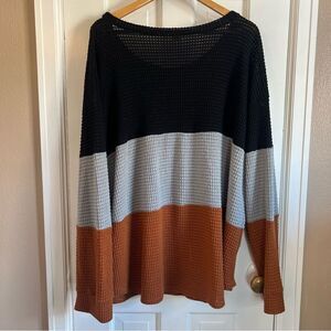Embrace comfort and style with this Sew In Love sweater, featuring a striking black and orange color block design. The crew neck and full-length sleeves offer a classic look, while the soft knit material ensures a cozy fit. Perfect for adding a pop of color to your wardrobe.