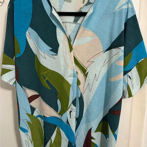 Vibrant tropical print. Relaxed fit. Short sleeves. Perfect for casual wear. Excellent preowned condition from pet free smoke free home!