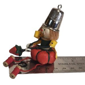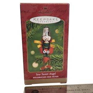 Embrace the charm of the Sew Sweet Angel Hallmark Keepsake Ornament from 2001, beautifully sculpted by Sue Tague. This adorable angel ornament features a unique design with a tomato pin cushion and spool of thread body, wings crafted from measuring tape, and a thimble hat. Presented in its original box, it's a delightful addition to any ornament collection for those who appreciate the artistry of holiday decor.