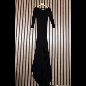 Sew Trendy Maternity Gown XS Womens Black Maxi Chiffon Knit Long Sleeve
