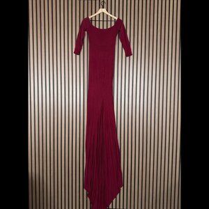 Sew Trendy Maternity Gown XS Womens Red Maxi Chiffon Knit Long Sleeve