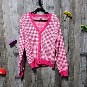 Sew In Love Pink Houndstooth Button Cardigan Sweater NWOT