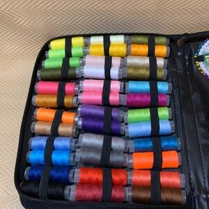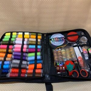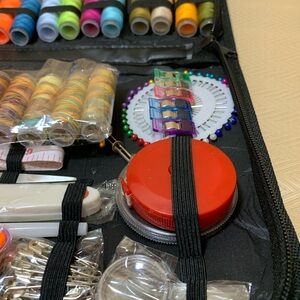 Comprehensive sewing kit with 41 thread reels, needles, measuring tape, buttons, scissors, needle threader & more. All in a zippered traveling bag Perfect for all sewing projects.