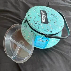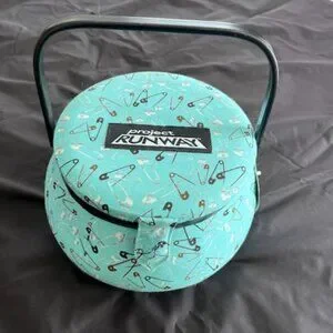 Project Runway sewing box with handle, plastic tray and snap close.