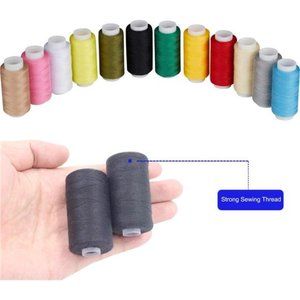 🧿WHAT'S INCLUDED - 12 rolls 400 yards of polyester thread with most used colors, 1pcs needle box (30 pieces),1pcs 40 color pins, 1pcs thread remover, 10pcs metal buttons, 12pcs paper clips, 10pcs black resin buttons, 10pcs resin white buttons , 1pcs U-Shape scissor, 1pcs 60inch tape measure, 1pcs thimble, 1pcs needle threader ,1pcs metal bobbins and 1pcs tailors chalks