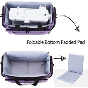 🧿MAIN COMPARTMENT: Wide open design makes it easy to get your sewing machine in and out. A removable padding pad at the bottom reduce the risk of bumping and damping. 2 translucent zip pockets are used to store small sewing accessories.