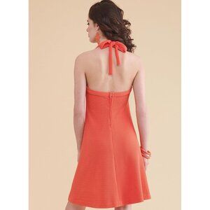 This Simplicity sewing pattern allows you to create a timeless vintage halter dress, designed for stretch knits only. With its flattering A-line silhouette and easy-to-sew instructions, this pattern is ideal for crafting a stylish piece reminiscent of the 1970s.