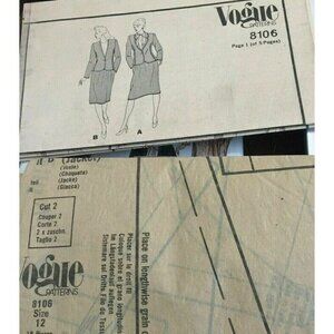 Sewing Pattern Vogue 8106 Misses Jacket & Skirt Size 12 (Bust 34) Vintage Uncut
