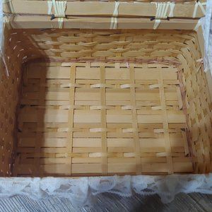 Basket is in good condition. One pin cushion has spools of thread sewn around it. 9'x7"x4"