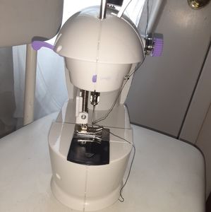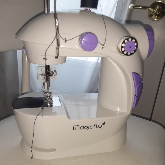 This is a magicfly sewing machine it's a mini one for girls its purple and white comes with booklet about the sewing machine and cords as well.