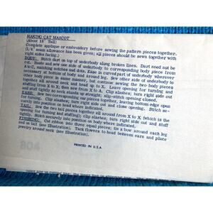 Sewing pattern 804 Long neck Plush cat 1950s 16in tall
