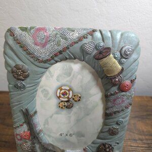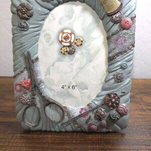Sewing-Themed Resin Frame 4"x6" 3D Decorative Buttons Scissors Thread Spool