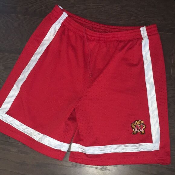 Sewn red vintage Maryland Terrapins NCAA Lined Basketball team practice shorts