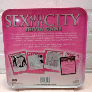 The Sex and The City Trivia Game is a fun and entertaining adult game inspired by the popular HBO series. With a minimum of 2 players, this game is perfect for fans of the show. The game features questions related to the iconic TV series and is suitable for individuals aged 18 and up. The travel tin box makes it convenient to play at home or on the go, and anyone can join in on the fun. Made by Cardinal in 2004, this game is a nostalgic and interactive way to test your knowledge of Sex and The City.