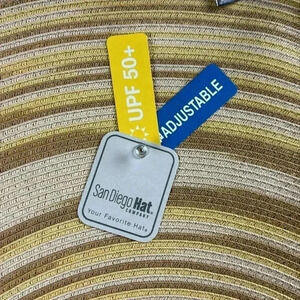 Sexy adjustable brim and head band 10” brim yellow and creme San Diego hat company with SpF 50 plus adjustable head band and adjustable rim NWT