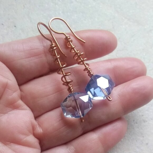 Materials Used: Shimmering, faceted blue crystal beads + hand shaped, hammered + wrapped copper
