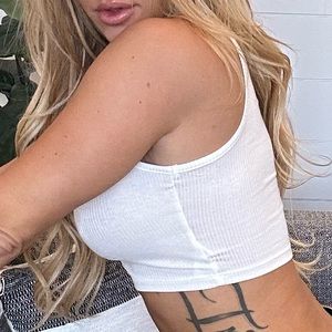 Sex-er-cise Tank, Ribbed, Cropped Tank, In White With Black Lettering, Size S