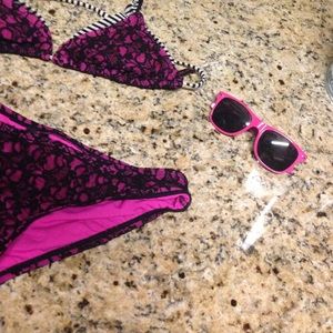 Sexy hot pink with black lace bottoms. Matching lace with layered stripe baking