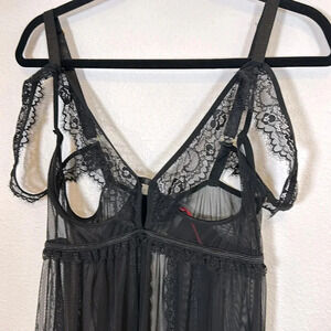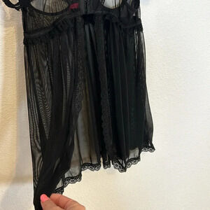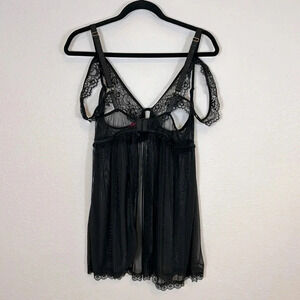 Great condition. Please note that panties are not included. This is for the babydoll lace mesh dress and the Garter Belt as seen in photos.