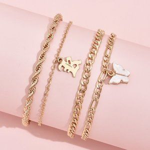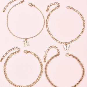 Sexy 4 Piece Mixed Chains Charms Gold Ankle Bracelet Anklet Beach Summer Boho