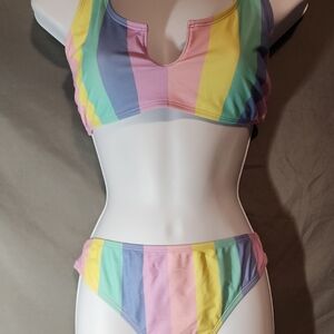 Sexy And Colorful Rainbow Striped Bikini Set In Large