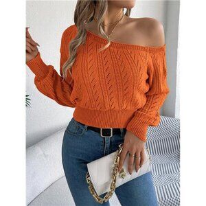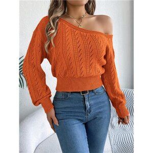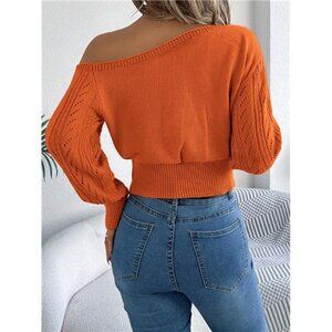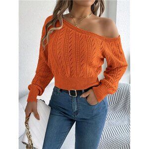 Sexy Asymmetrical Long Sleeve Knit Pullover Sweater Orange