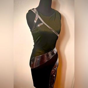 Sexy Bebe Addiction Bodycon Cocktail Dress, Stretchy, Tight Fit, Black & Silver-Never Used, Side Zippered,