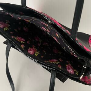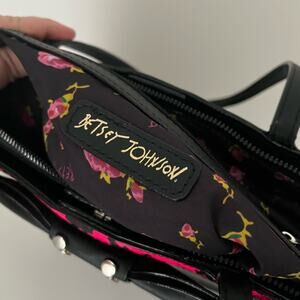 Classic! This Betsey Johnson Black Vegan Leather and Pink snakeskin tote is gorgeous! Great used condition like new. See pics for any normal wear and tear.