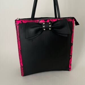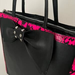 Sexy Betsey Johnson Black Vegan Leather and Hot Pink Snakeskin Tote Bow Tie