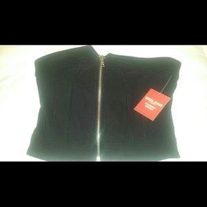 Black - fitted tube top. Stretch material. I bought for a trip to Vegas, but never wore it (sad face). GREAT to wear to a party or Happy hour event! Pair with your favorite jeans or black leggings.