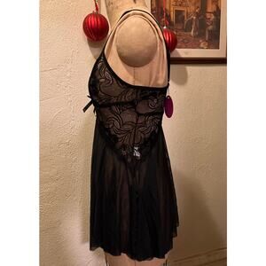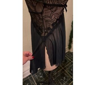 Sexy Black Lace Sheer V-neck Babydoll Chemise Slip Short Nightgown NWT Size M