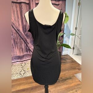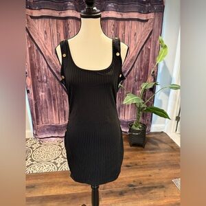 Elegant black sleeveless dress featuring stylish button accents. Perfect for any occasion.