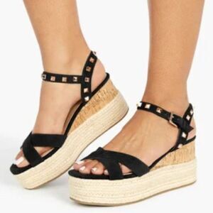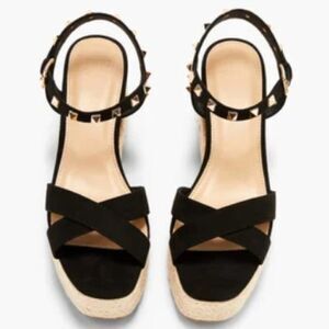 Sexy Black Studded Platform Wedge High Heel Sandals