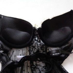 Super sexy black lace slip with white lace trim. Push up padding in bra. Size Small, I would say this fits a 34B-C the best. Matching thong comes with. NWOT, never ended up wearing it.