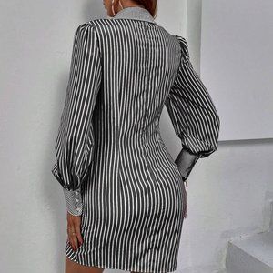 Sexy Black and White Striped Print Button Front Shirt Dress