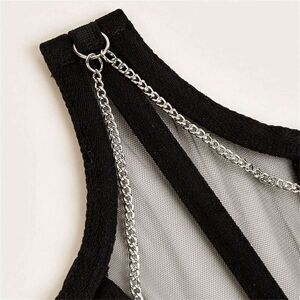Sexy Black Mesh Splice Chain Detail Wrapped Chest Bustier Waist Cincher Corset with Steel Bones