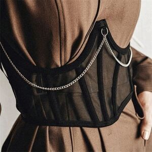 🖤 Sexy Black Mesh Splice Chain Detail Waist Cincher Corset with Steel Bones NEW