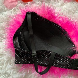 Pink and White Boa on Black Bra with Pink Polka Dots