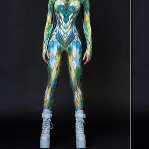 Never worn. Bought the wrong size. These bodysuits are extremely flattering. Transform into a forest dryad with our enchanting costume that captures the beauty of nature. Featuring intricate glass-like details and delicate textures, this look embodies the spirit of the ancient forests, blending elegance with an otherworldly charm. The shimmering accents imitate reflections like dew on leaves, making you feel as if you’ve stepped right out of a fairytale. Perfect for festivals, cosplay, or magical gatherings, this dryad look is designed for those who want to celebrate the beauty of nature while adding a touch of enchantment to their style.