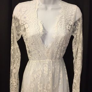 New in package. Sexy sheer deep lace V-neck beach dress perfect for photo shoots.