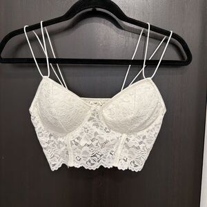Sexy Bozzolo Corset-Style Bralette White Lace Padded Wireless Small