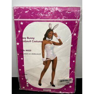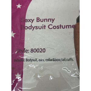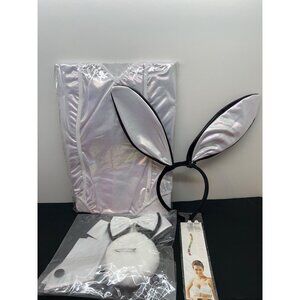 Sexy Bunny Bodysuit Costume Set With Ears Collar & Bow Tail Cuffs Size S