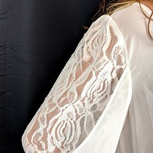 Sexy ~ By & By Off White Sheer Top - Lace Sleves