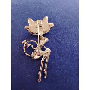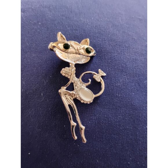 Sexy Cat Lady Brooch Pin Faux Opal, Glasses, Green Eyes, Bow on Tail