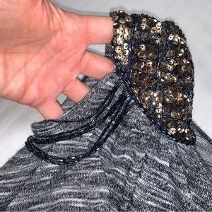 Sexy Cold Shoulder Beaded Gray Space Dye Ruched Side Asymmetrical Blouse Shirt Top