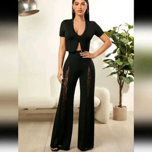 Sexy Contrast Lace Flare Leg Pants
