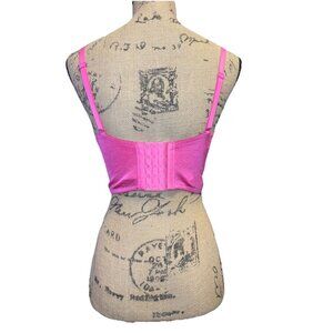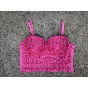 Sexy Corset Lace Bra Crop Top Summer Party Bustier Strappy Bedazzled Pink SMALL